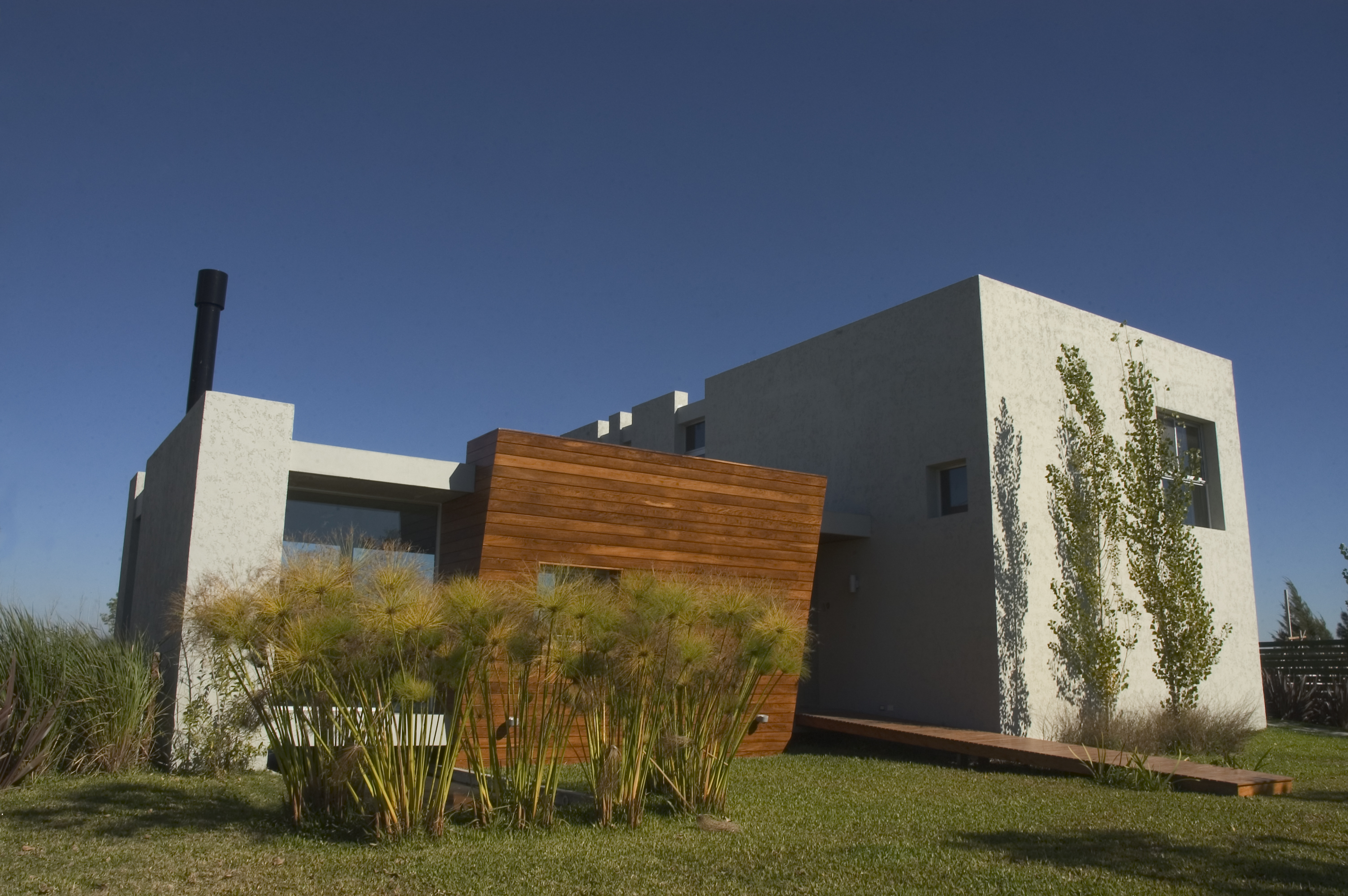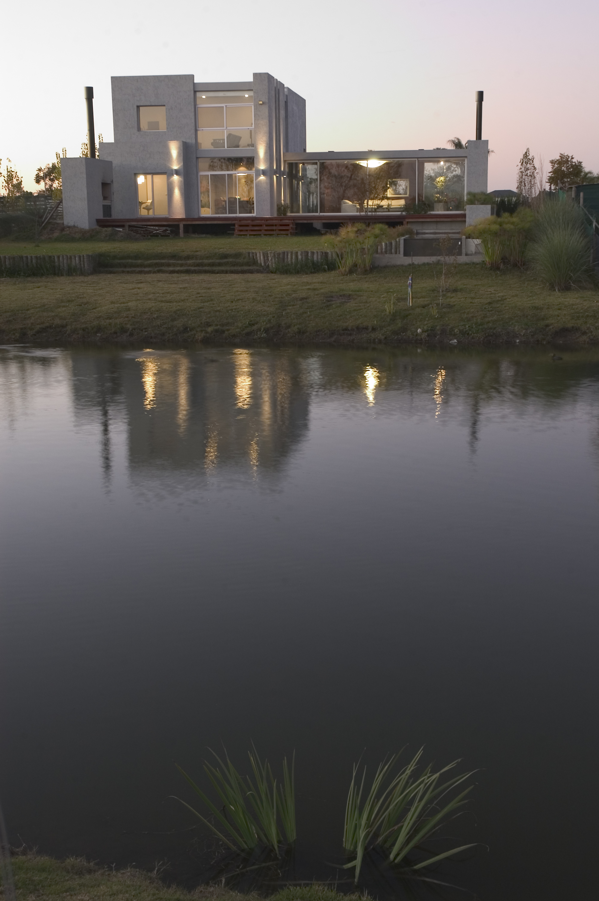 El terreno ofrece una excelente orientación sobre dos lagos (frente y contrafrente) que fue determinante en la implantación. Es así que se optó por construir un puente, bajo del cual corre un espejo de agua que intenta crear lazos de unión entre lo estrictamente natural y la vivienda.