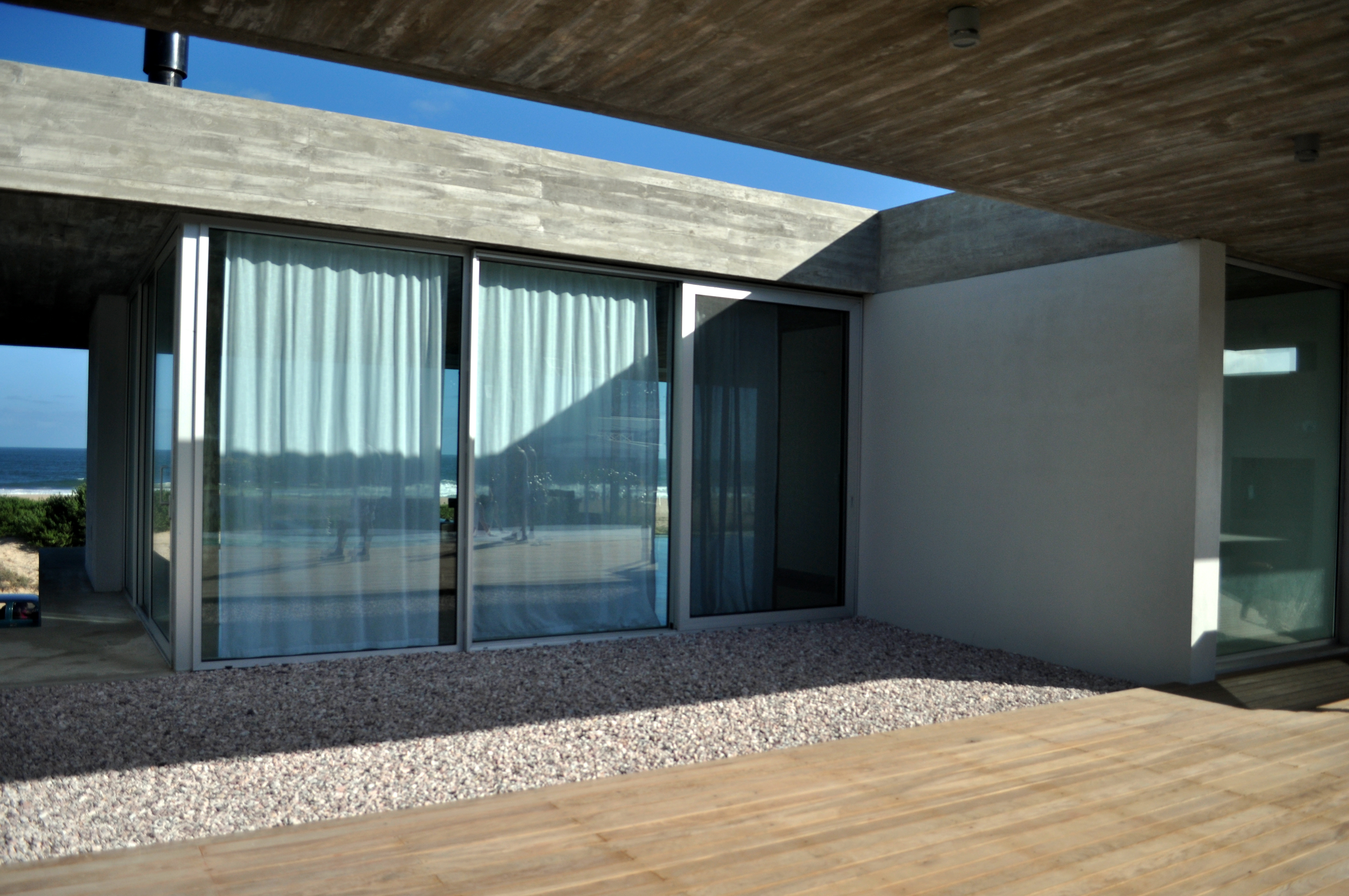 El mar al frente y la pileta, transversalmente ubicada y siguiendo todo el ancho de la terraza posterior, generan una visión permanente de agua desde el estar, que optimizan las condiciones naturales que el terreno nos ofrece.